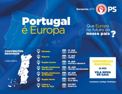 Rumo às Europeias 2019, assim se denominada a iniciativa que o PS organiza com sete convenções regionais, culminando numa convenção nacional, a realizar no dia 16 de fevereiro. A Europa mudou a vida do nosso país, de cada região e das pessoas. Europeus convictos, que Europa queremos para o nosso futuro?